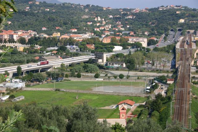 liegt idyllisch zwischen der Autobahn und der Bahnstrecke Genua-Nizza.