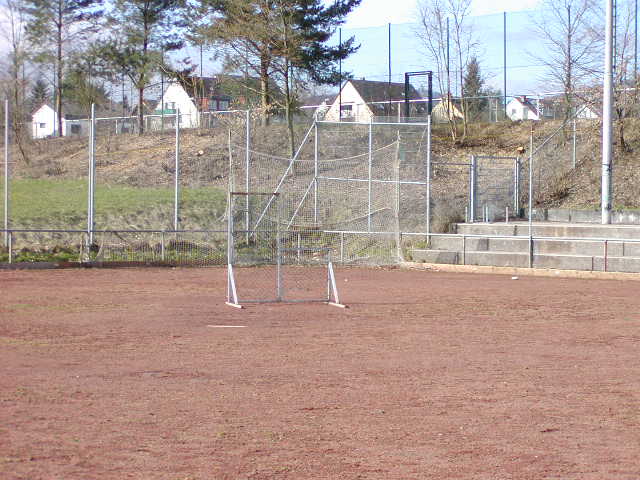 Pitchers Mound und Backstop. Der Fußballplatz